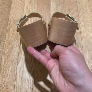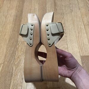 Ulla Johnson Sicily leather buckle sandal wooden clogs. In great condition with minor scuffing/discoloration, pictured.