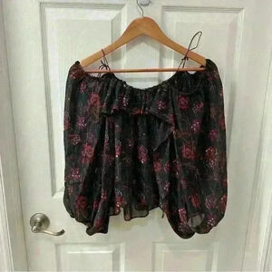 ULLA Johnson Coline Black Red Silk Off the Shoulder Spaghetti Strap Blouse 8