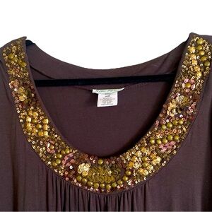 ULLA POPKIN Brown Sequined Scoop Neck Dress Tunic