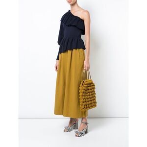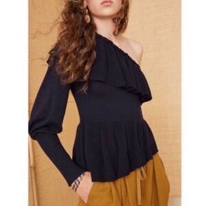 ULLA JOHNSON Eden one-shoulder ruffled sweater Navy size Large