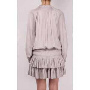 ULLA JOHNSON Piera Pleated Ruffled Matte Satin Drop Waist mink color Dress sz