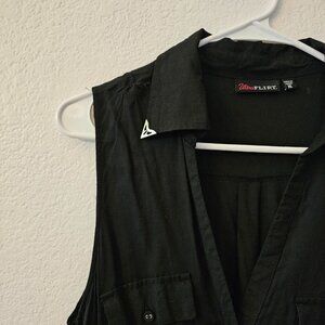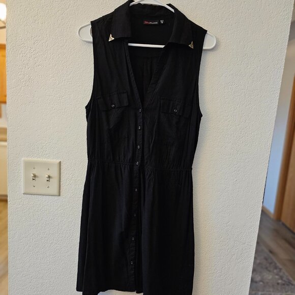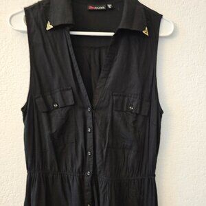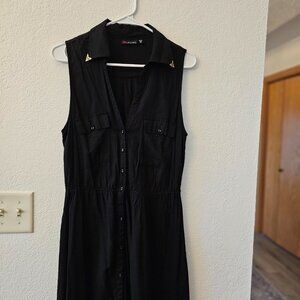 ULTRA FLIRT Black Dress Size XL Button Down Gold Collar Accents Sleeveless