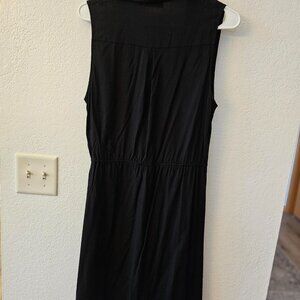 ULTRA FLIRT Black Dress Size XL Button Down Gold Collar Accents Sleeveless V Neck Flowy Soft Stretch Waist