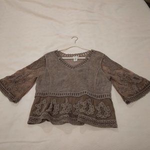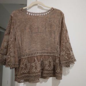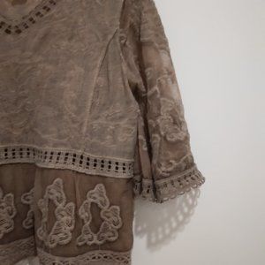 ULTRA PINK TAUPE EMBROIDERED BLOUSE SIZE M