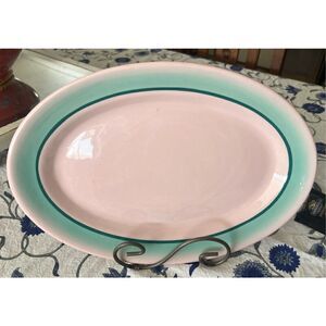 From Tepco China started right here in the bay area in El Cerrito California this is an incredibly rare pink and green platter. I have researched and researched and cannot find this pattern anywhere ! apparently Tepco had upwards of 400 patterns and this is a rare one ! this is an awesome vintage condition with no crazing or chips.
