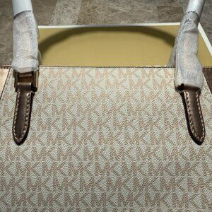 ACCEPTING ALMOST ANY OFFER AND WILL SHIP OUT SAME DAY WITHIN MINUTES OF ACCEPTED OFFER!!! RARE ROSE GOLD KORS MONOGRAM AND LEATHER TOTE! BRAND NEW WITH TAGS AND MK SIGNATURE BAG CHARM!!