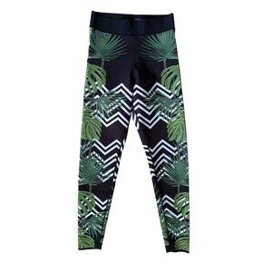ULTRACOR Palm Leaf Green and Black Training Leggings Size Small Gold Stripe