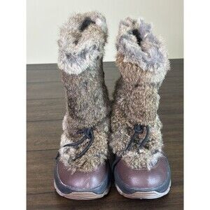 ULU Women's 6.5 Brown Leather & Rabbit Fur, Insulated & Waterproof Winter Boots