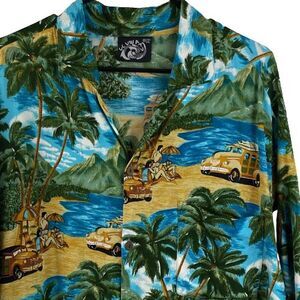ULUWATU Men's 2XL Hawaiian Shirt Beach Palm Trees Tropical Aloha Surf Car