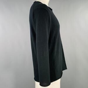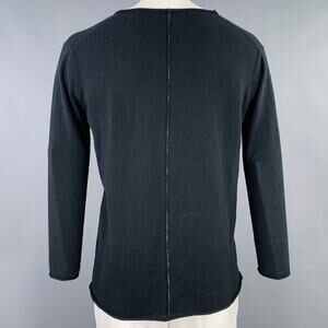 UMA WANG Size L Black Distressed Knit V-Neck Pullover