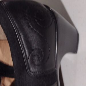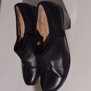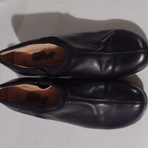 size 7 leather uppers black shoe they look extremely comfortable they are in wonderful pre-owned condition any questions please ask has always I love offers have a wonderful day
