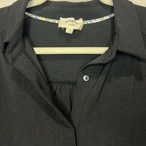 UMGEE black button down flowy collared black blouse with cap sleeves