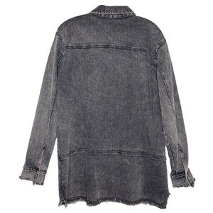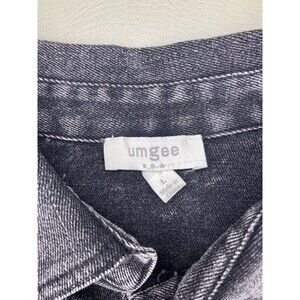 UMGEE Black Denim Jacket Women Large Long Line Raw Hem Button Front Collared