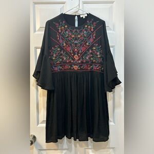 UMGEE Black Embroidered Tunic Dress Gauzy Boho Whimsy Goth Women Sz M