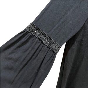 UMGEE Black High Low Hem Red Floral Embroidered Sleeves Boho Tunic Top Sz S
