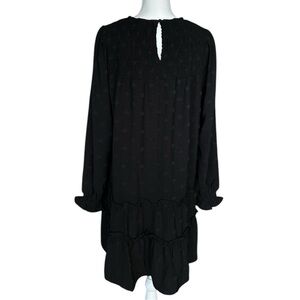 UMGEE Black Swiss Dot Mini Dress sz M Ruffles Balloon Sleeve Smocked Yoke #C3421