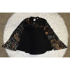 UMGEE Blouse Top Y2K Fairycore Bell Sheer Velvet Sleeve SMALL Boho Goth Grunge
