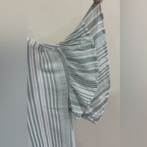 UMGEE Blouse Tunic Sz L Greenish Striped Button Down Lagenlook Boho