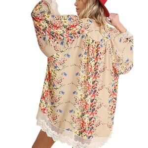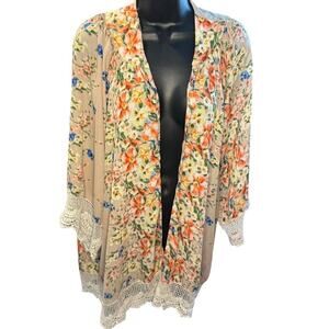 UMGEE Boho Floral Bomb Open Front Lace Duster Kimono Cardigan Size S/M