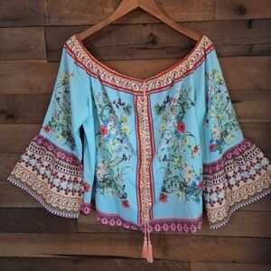 Umgee USA Boho Floral Print Off-Shoulder Blouse – Size Large