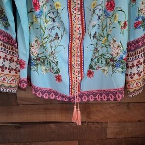 UMGEE Boho Floral Print Off-shoulder Blouse with Tassels SZ L