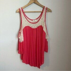 UMGEE COLD SHOULDER TOP WITH LACE Coral Size Medium in excellent condition no flaws. Bohemian Style.