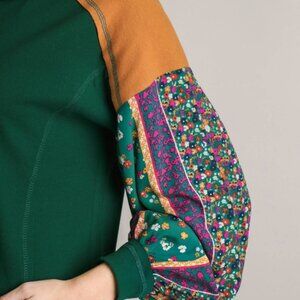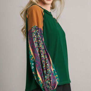 UMGEE Colorblock Contrast Knit Top with Printed Sleeves (New)