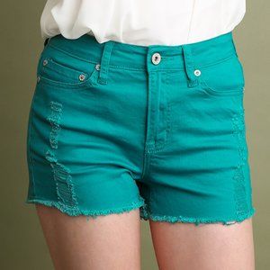 UMGEE DISTRESSED DENIM STRETCH CUT OFF SHORTS