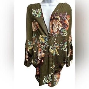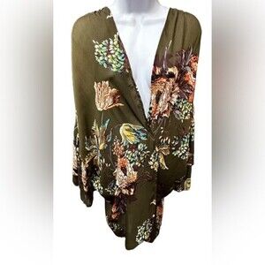 UMGEE FLORAL KIMONO DUSTER SZ S/M OLIVE MUTICOLOR