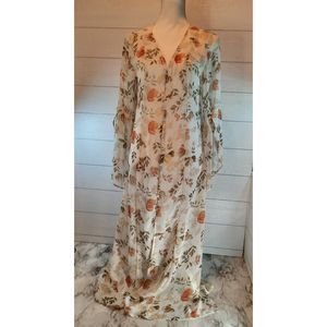 UMGEE Floral Print Sheer Buttoned Front Bell Sleeves Maxi Dress Cardigan Sz S