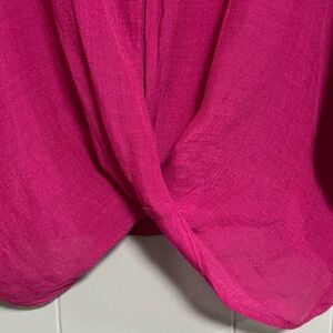 UMGEE Fuchsia Twisted Top Short Dolman Sleeves Loose Sheer Coastal Size Medium