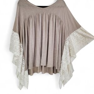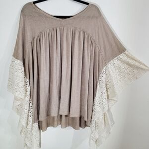 UMGEE WOMENS Cream Knit PULLOVER SHIRT LACE Size Small Oversized