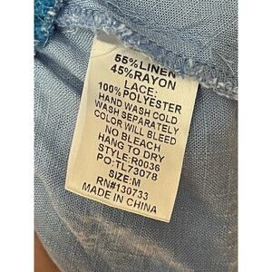 UMGEE Linen Blend Top Blouse Crochet Lace Blue Multicolor Medium