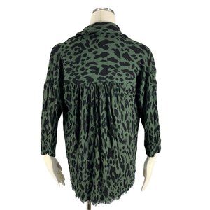UMGEE Medium Green Cheetah Blouse Raw Hem Boutique