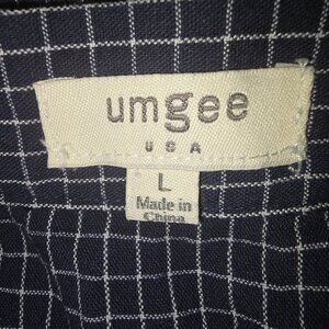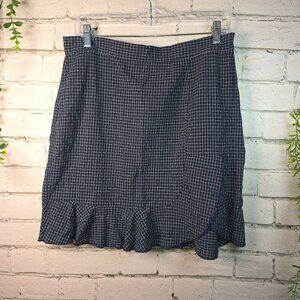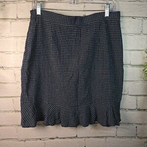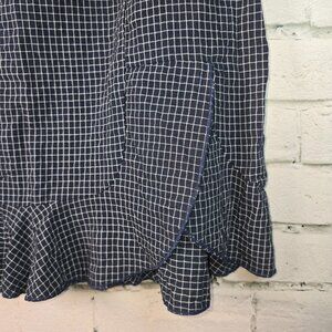 UMGEE NAVY PLAID SKIRT RUFFLED HEM FAUX WRAP WOMENS COTTON BLEND SIZE LARGE EUC