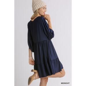 UMGEE Floral Embroidered V-Neck 3/4 Sleeve Tiered Babydoll Dress