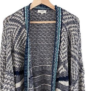 UMGEE Open Front Cascading Patterned Longline Cardigan