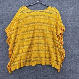 UMGEE Poncho Top Large Yellow Lace Pullover Round Neck Ruffle Boho Hippie 90s