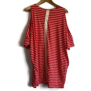 UMGEE Red Striped Cold Shoulder Lace Tunic Blouse Shirt Swim Coverup Pockets M