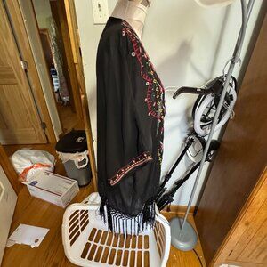 UMGEE Sheer Black Fringe Wrap Cardigan