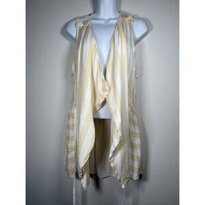 UMGEE Sleeveless Butter Yellow Stripped Wrap Vest Boho Lagenlook Size Medium