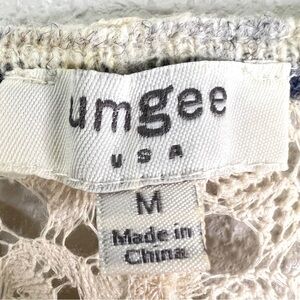 UMGEE USA Womens Lace Cardigan Sweater Size M Open Front Textured Cotton Navy