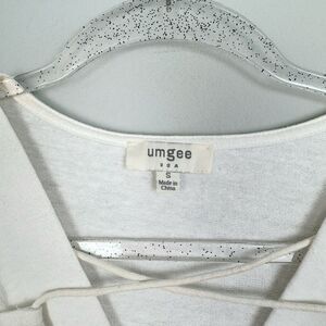 Cute casual dress by Umgee. Short sleeves. Elastic x straps at the bust. Material is like a lightweight sweatshirt. Perfect for a swim coverup. Good preowned condition - some minor spots from try on. Women’s size small.
