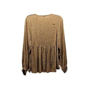 UMGEE Womens Golden Yellow Longsleeve Flowy Boho Hippie Blouse Linen Small