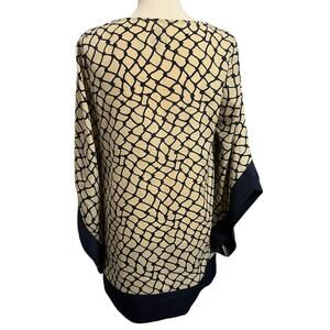 UMGEE | Women's Semi Sheer Gold Navy Oversized Boho Tunic Mini Dress Sz M