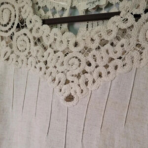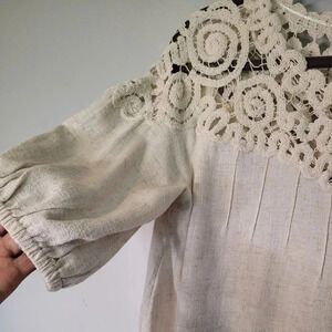 UMGEE linen cotton crochet lace balloon sleeve BOHO blouse top, oatmeal size M