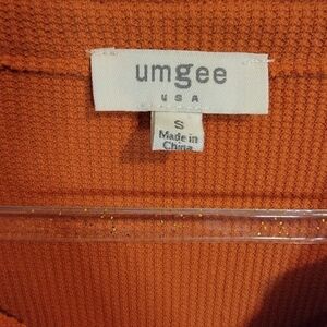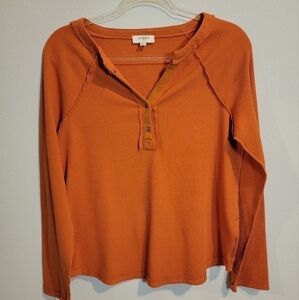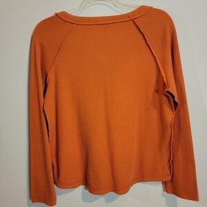 On trend, great layering piece! Perfect condition Size Small easy to wear Burnt orange top. Flattering fit and high quality.
