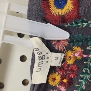Umgee skirt cool grey skirt NWT mini skirt embroidered front zip back lined. floral