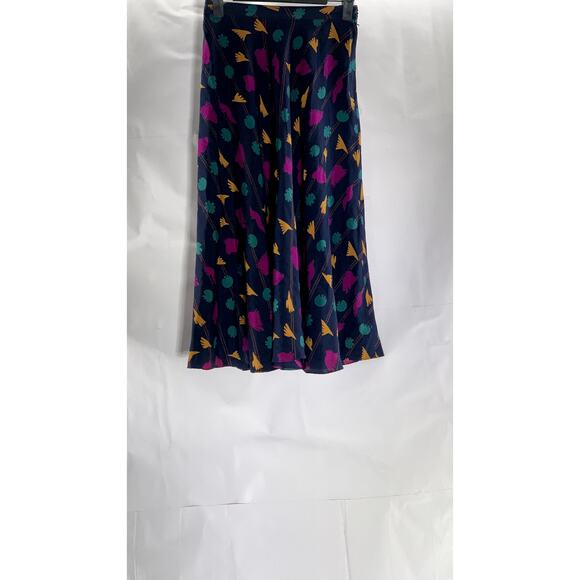 UMI COLLECTION By ANNE CRIMMINS Women's Navy/Multicolor Silk Midi Skirt SZ 4