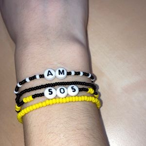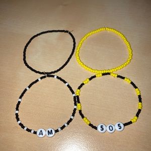 Pack of 4 Bracelets (AM, 505, black accent bracelet, yellow accent bracelet)